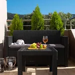 Hier gibt es einen Patio und einen Balkon, sowie können Gäste einen Ausblick auf die Berge genießen. Zu den Details im Zimmer gehören auch Fliesenbodenbelag, ein Sofa und ein Schreibtisch. Das Badezimmer ist mit einem Bidet, einer Badewanne und einer Dusche ausgestattet und verfügt auch über einen Haartrockner und Handtücher.